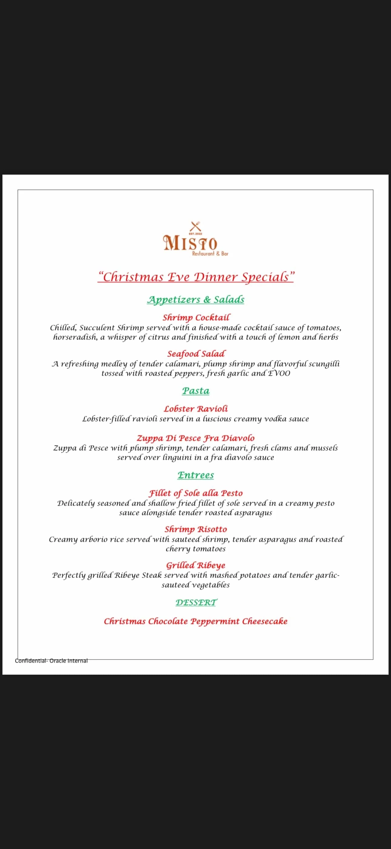Event Description: Join us at Misto this Christmas Eve for Dinner